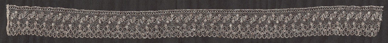 Many-pair lace, Krajnian type, made of thin threads. The base is tulle ribbon, weaving plain, eyelets, insertions of thicker thread. The lace is finished with tiny teeth.