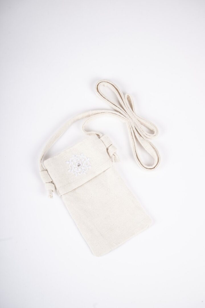 The design and production is by Júlia Šmidáková, who is behind the brand Heavenly. The pouch is made of linen canvas, complemented by embroidery – loosely inspired by the folk costume from the surroundings of Piešťany. The remnants of linen canvas from clothing production are used to make it. It is suitable for most standard-sized mobile phones.