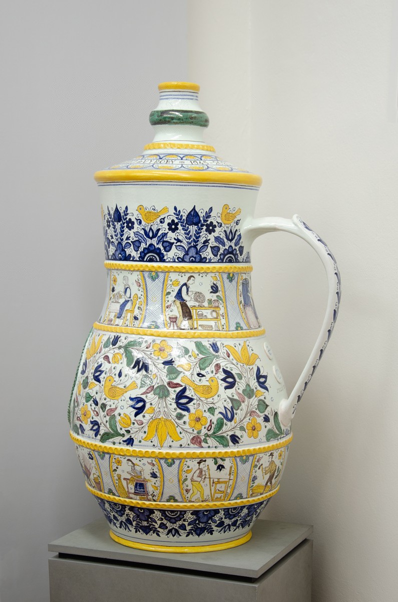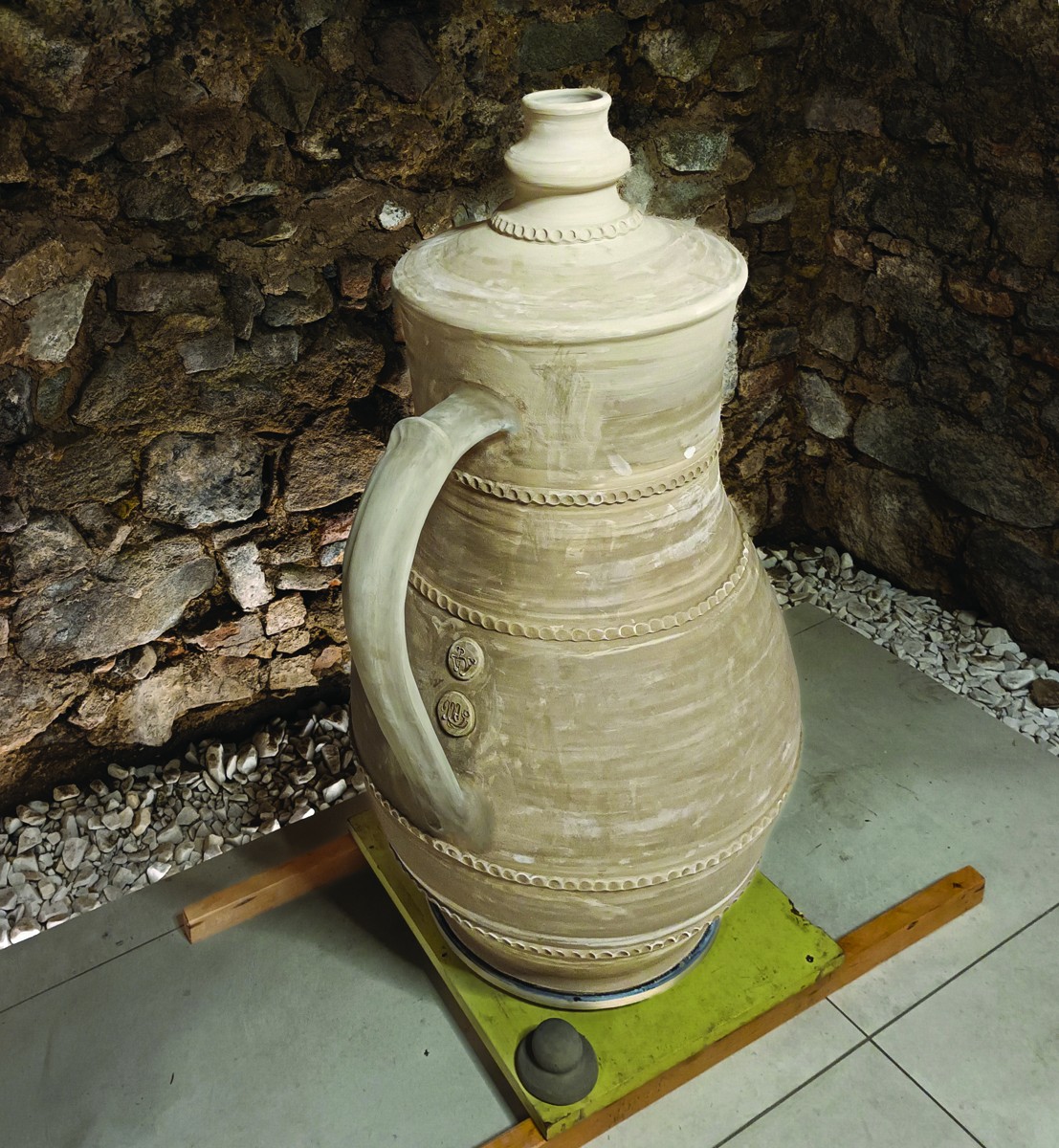 Kruh sa roztočí, hlina sa poddá. Pod tlakom majstrových rúk sa rodí pevné dno. A keďže džbán má vyrásť do výšky jedného metra, výrobu je nutné rozdeliť po jednotlivých vrstvách. Na kruhu majster Viglaš postupne vytáča prstence vysoké približne 15 až 20 centimetrov a tie spolu s majstrom Liškom opatrne vrství jeden na druhý, znovu zatočí, scelí… Majster džbankár ako strážca rovnováhy. Nie je tu priestor na nesprávne pohyby ani unáhlené kroky.