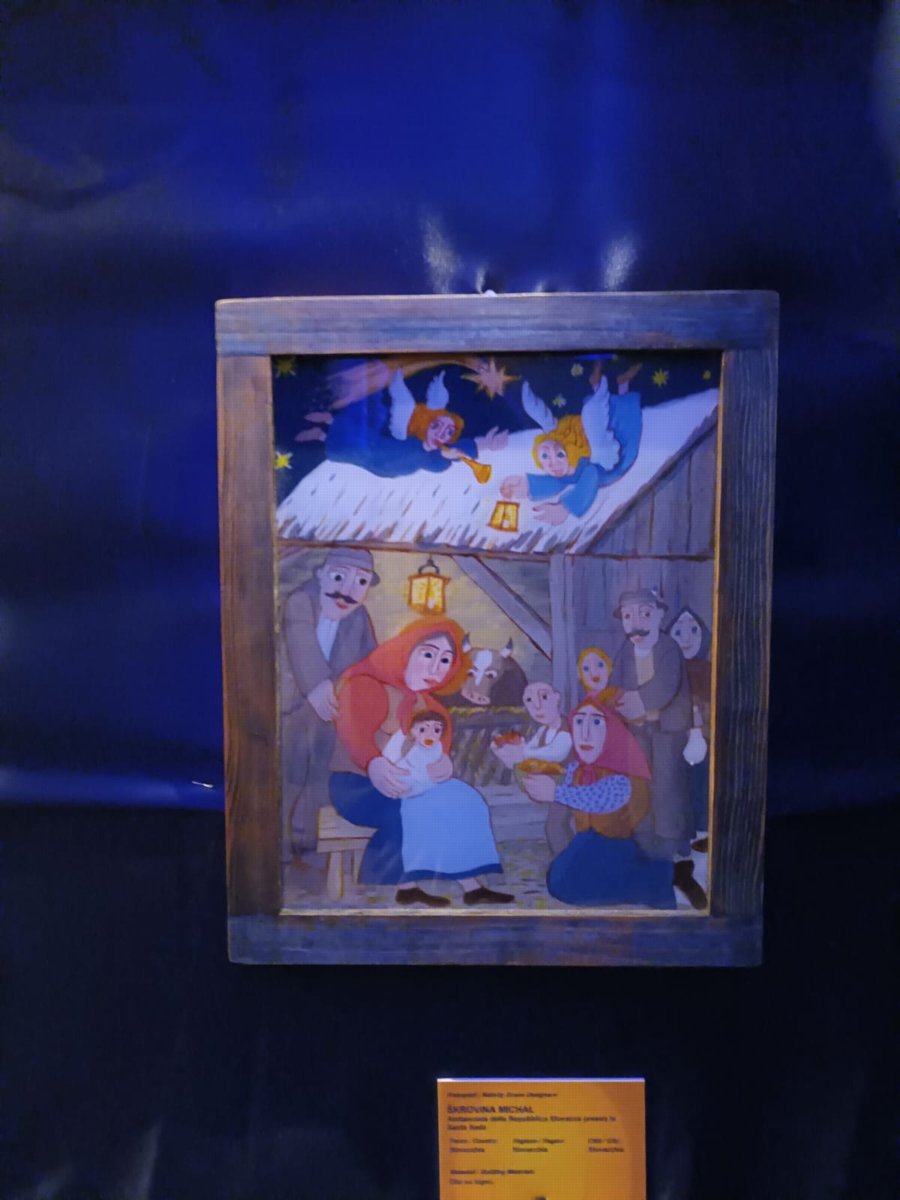 Slovensko reprezentujú svojimi dielami štyria majstri ľudovej umeleckej výroby. Jana Majerská je autorkou otváracieho betlehemu z dreva zdobeného precíznym linkorezom a ornamentikou inšpirovanou kyjatickou výzdobou. Michal Škrovina vytvoril betlehem technikou maľby na sklo. Mäkké, harmonické farby navodzujú pokoj a tichú atmosféru Vianoc. Rezbárske remeslo s využitím tradičného lipového dreva reprezentuje ručne vyrezávaný a kolorovaný betlehem Petra Zoričáka a poeticky stvárnené súsošie Svätej rodiny Jozefa Šímu, na ktorom vyniká prírodná krása dreva.