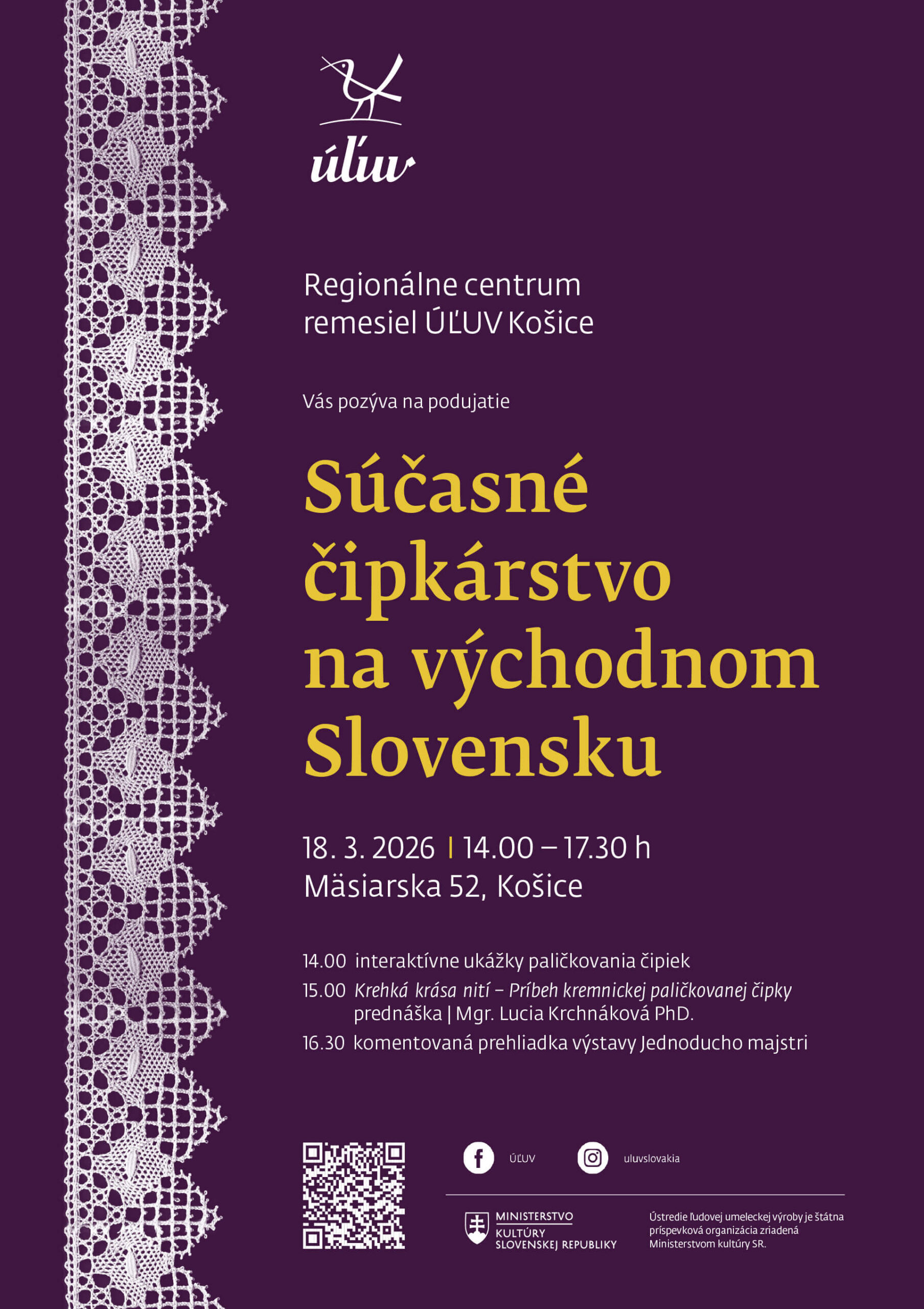 Regionálne centrum remesiel ÚĽUV v Košiciach vás pozýva na podujatie Súčasné čipkárstvo na východnom Slovensku.