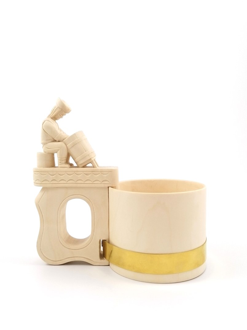 Výrobok – črpák stredoslovenského typu – je ručne vyrezávaný, skladaný, s figurálne vyrezávanou rúčkou a fixovaný mosadznou obručou. Drevorezba zobrazuje výjav z prostredia salaša – baču pri miesení syra.