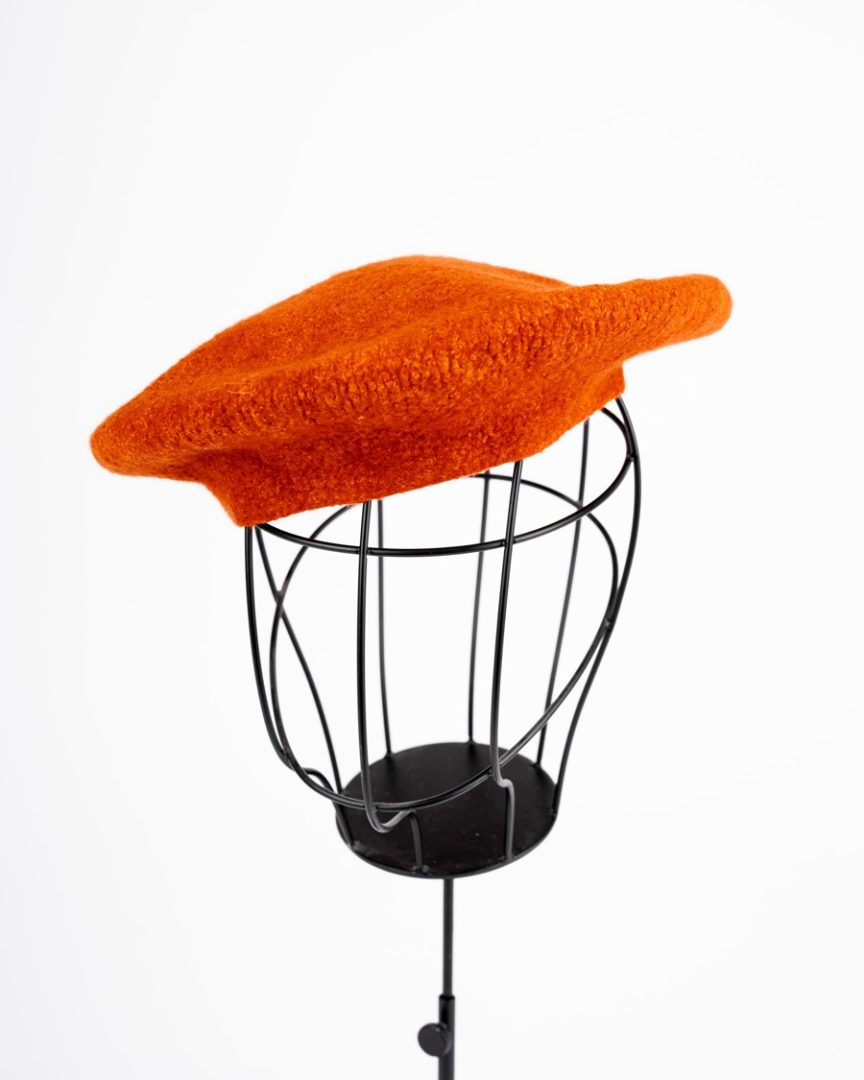 Baretka z ovčej vlny zhotovená technikou mokrého plstenia.