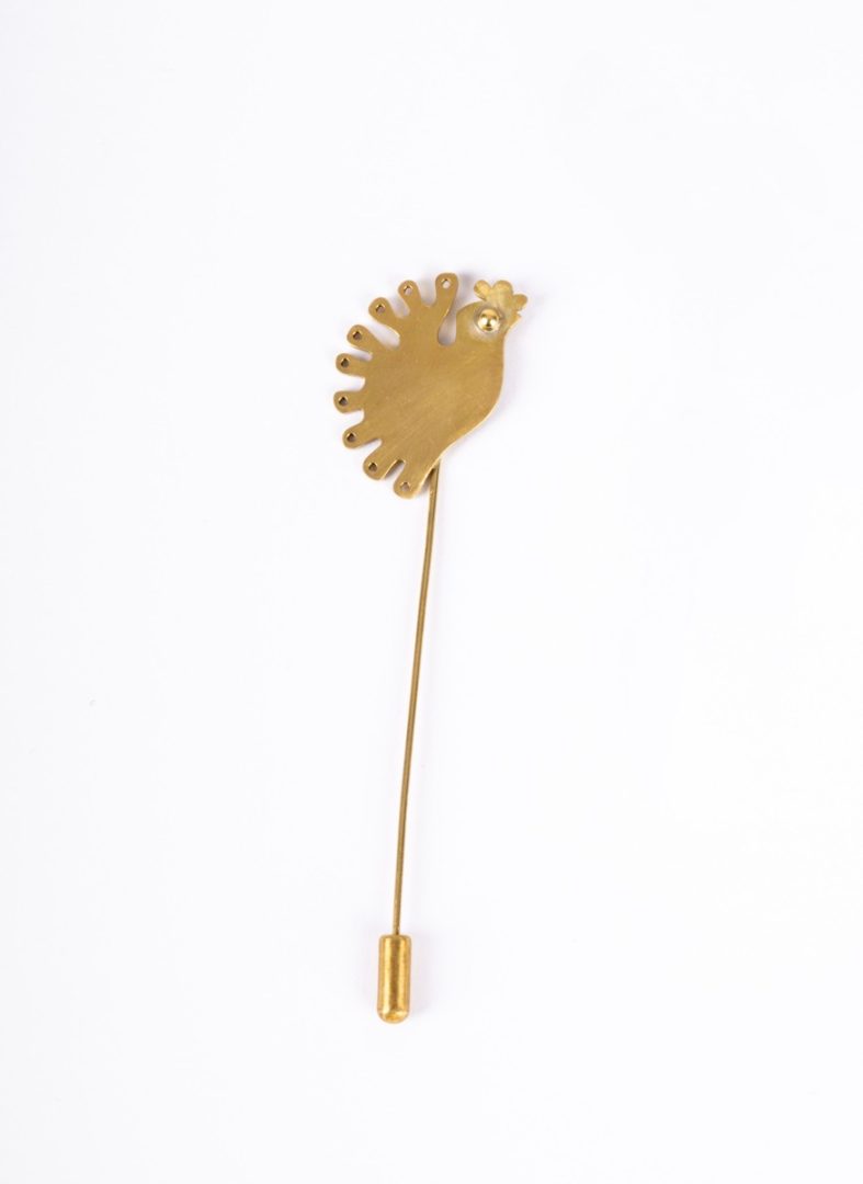 Mosadzná brošňa s ihlicou pochádza z redizajnovej kolekcie Výšivka . Autorka vytvorila novú kolekciu upravených brošní v rámci Otvoreného ateliéru ÚĽUV s cieľom zjednodušiť tvaroslovie a veľkosti. Inšpiračný zdroj pochádza z výšivky z oblasti Jablonice zo začiatku 20. storočia.