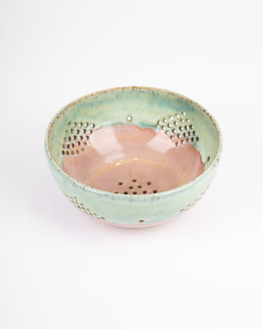 Cedník ručne točený .Povrchovo upravený farebnou glazúrou. Vysoký výpal kameniny zaručuje vysoké úžitkové vlastnosti. Vyrába sa vo viacerých farebných prevedeniach.