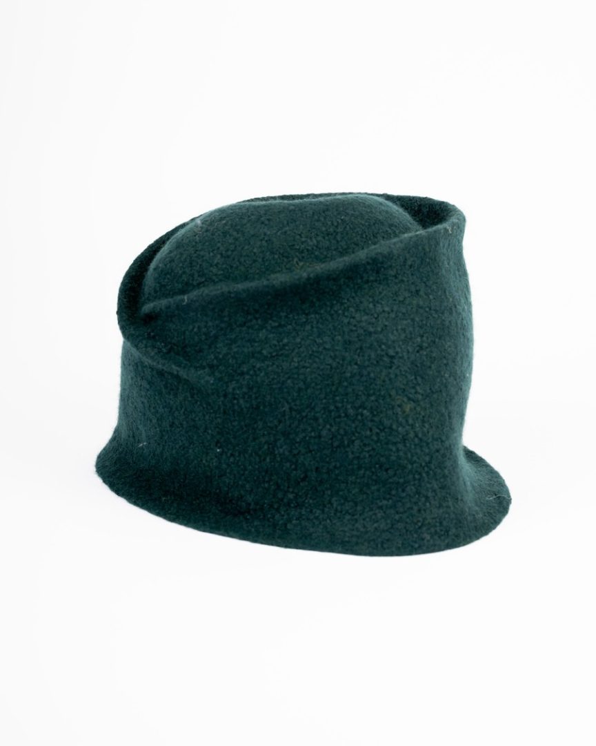 Klobúk z ovčej vlny zhotovený technikou mokrého plstenia.