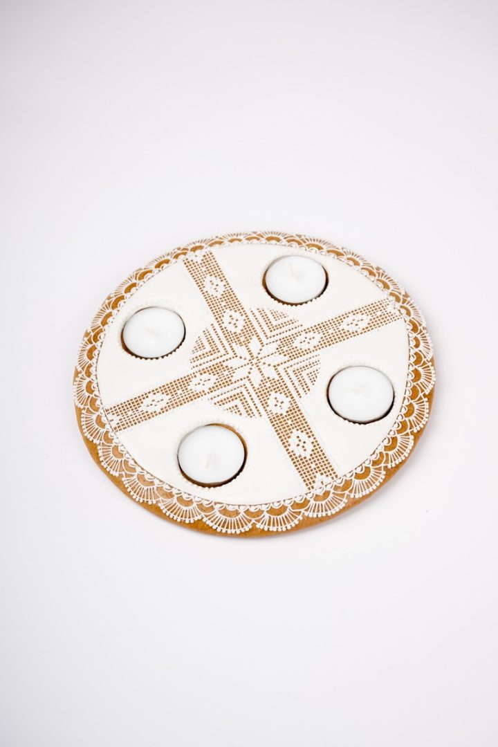 Medovník vykrajovaný zdobený bielou polevou- adventný veniec