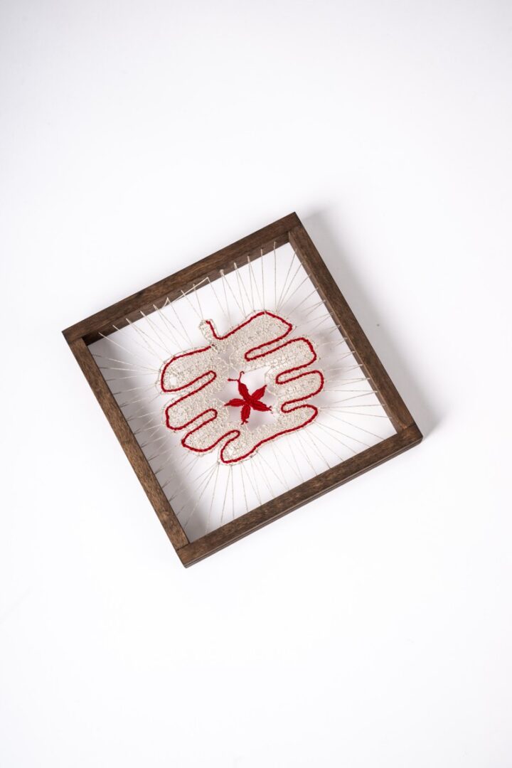 ÚĽUV / Výrobky / Obrázok paličkovaný v ráme – jablko červené