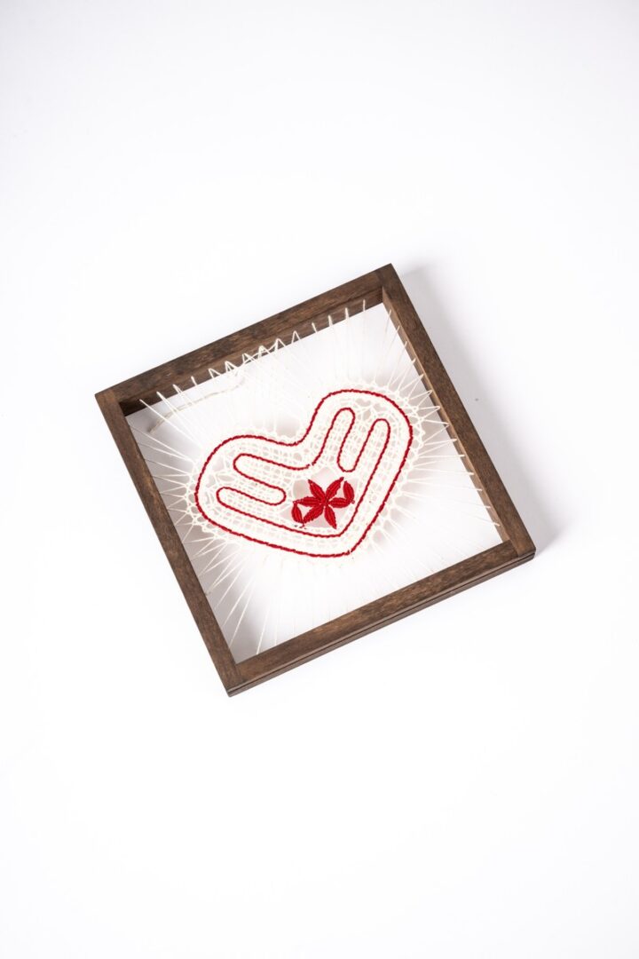 ÚĽUV / Výrobky / Obrázok paličkovaný v ráme – srdce červené