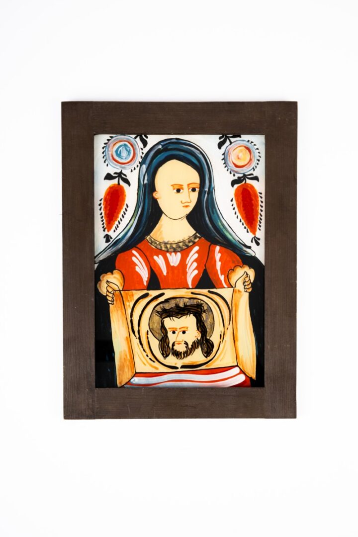 Obraz v drevenom ráme je zhotovený technikou podmaľby na skle. Motív“ Sv. Veromika “ s odtlačkom Kristovej tváre je voľnou replikou historickej podmaľby na skle ( prvá polovica 19.storočia) nájdené v okolí Prievidze.