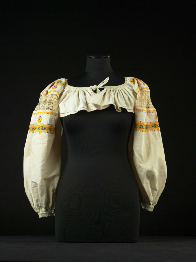 Rukávce sú ušité z domáceho plátna, drieková časť (stan) je z miešaného (bavlna + konope) a rukávy sú z bavlneného. V hornej časti rukávov je všitá široká mnohopárová čipka. Po oboch stranách čipky je výšivka podľa počítania nití, pás hrachovinky a geometrické motívy vyšité krížikmi a hladkovaním. Konce rukávov sú nariasené a cez riasy je našitý pásik plátna. Úzky golierik je vyšitý krížikmi a stonkovým stehom.