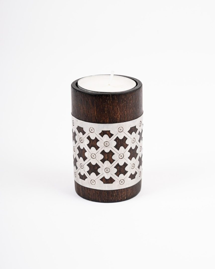 Svietnik sústružený z orechového dreva zdobený vylievaním.