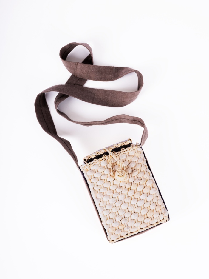 Základ tašky je upletený zo šúpolia na drevenej forme. Po obvode je pripevnený textilný pás z ľanovej metráže.