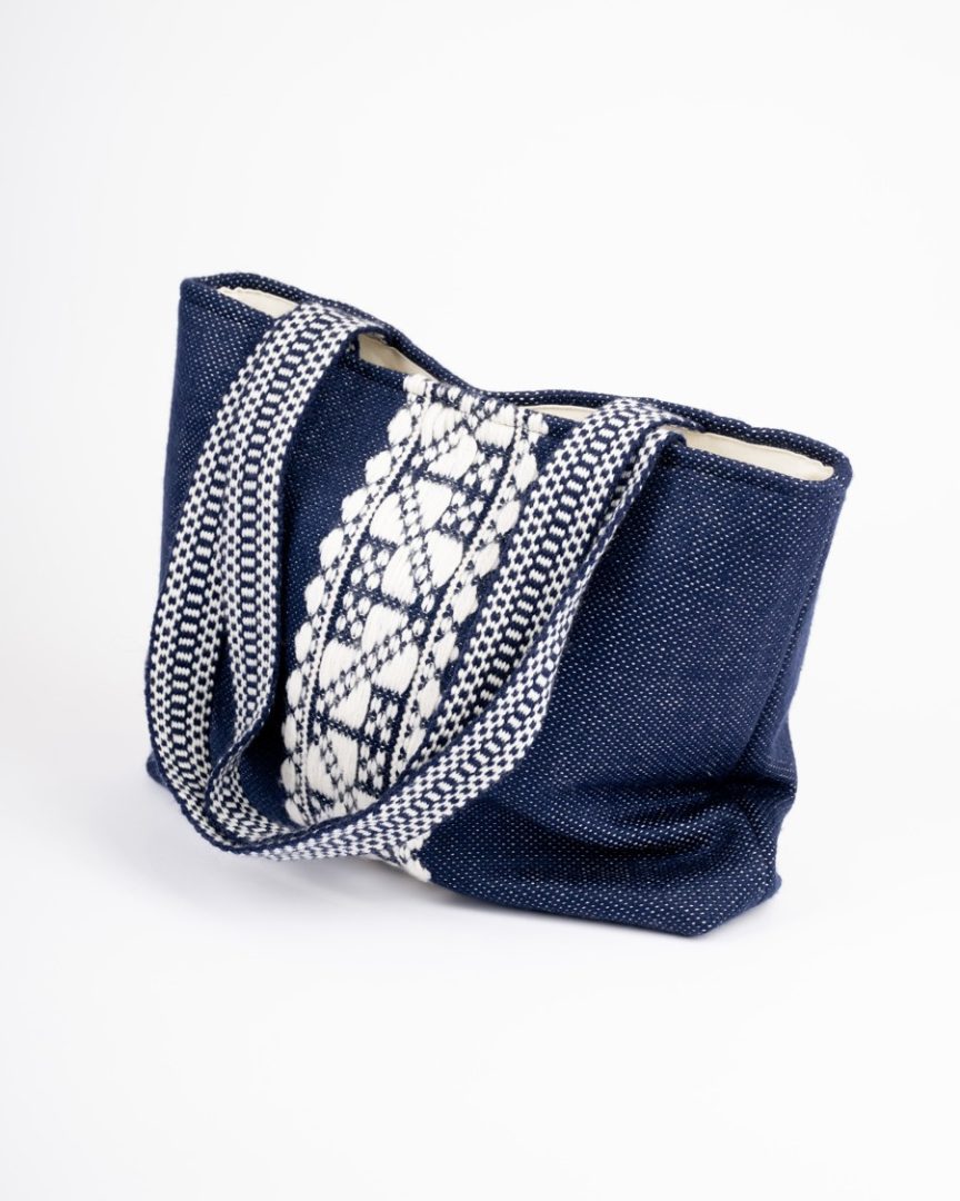 Tkaná taška so vzorom tradičným pre región Hont. Tkanina je zhotovená z vlny technikou tkania na krosnách, ramienko je utkané z bavlny na stužkových krosnách. Tašku dopĺňa bavlnená podšívka.