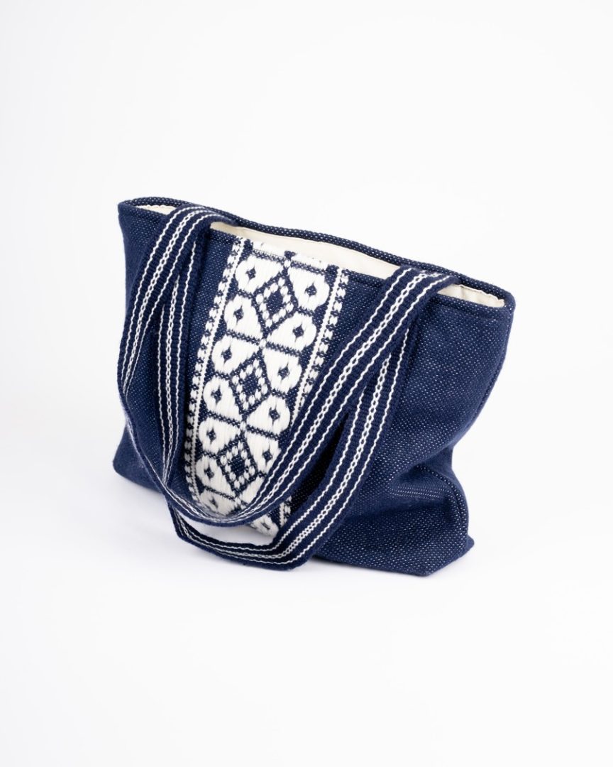 Tkaná taška so vzorom tradičným pre región Horehronie. Tkanina je zhotovená z vlny technikou tkania na krosnách, ramienko je utkané z bavlny na stužkových krosnách. Tašku dopĺňa bavlnená podšívka.