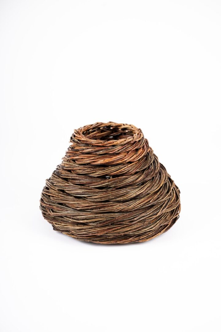 Váza zhotovená stáčanou technikou z nelúpaného vŕbového prútia vypestovaného samotným výrobcom. Funkciu vázy plní v kombinácii so sklenenou zaváraninovou fľašou vloženou dovnútra.