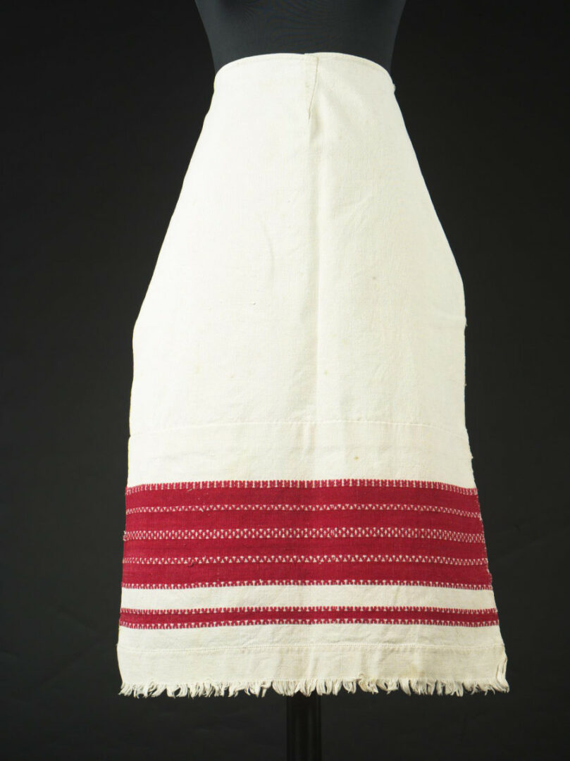 Zástera je z jednej šírky domáceho bavlneného plátna. Na dolnej časti má pásy vytkané ripsovou väzbou, medzi ktorými sú pásy jednoduchého preberaného vzoru. Samotný dolný okraj je zdvojený našitým pásom plátna, vystrapkaný okraj je bohatší. Na hornej časti zástery je ušitý záševok a k zástere sú prišité viazačky, biele.