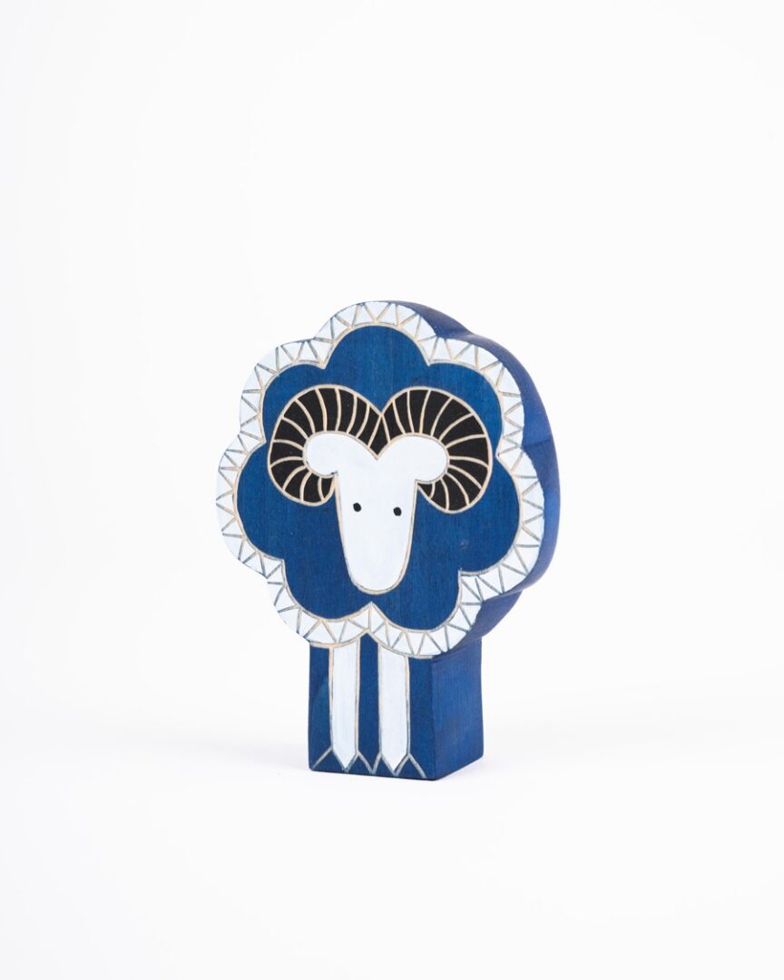 Kolorované zvieratko z lipového dreva. Výrobok je morený a zdobený technikou linkorezu. Dekór je inšpirovaný kyjatickou výzdobou.