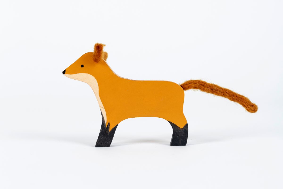Zvieratko je vyrezávané z bukového dreva, ručne maľované, doplnené plstenými uškami a chvostíkom.