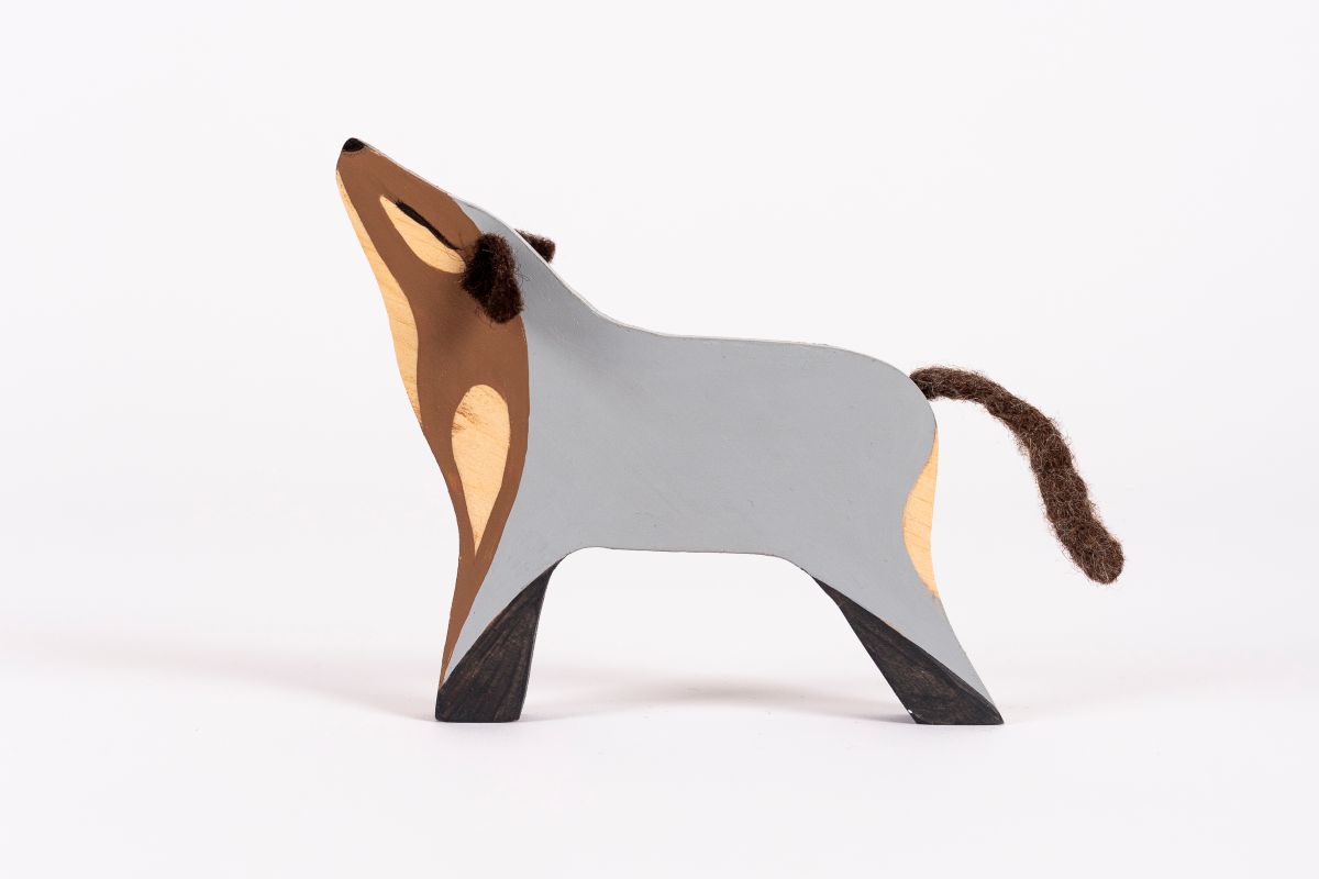 Zvieratko je vyrezávané z bukového dreva, ručne maľované, doplnené plstenými uškami a chvostíkom.